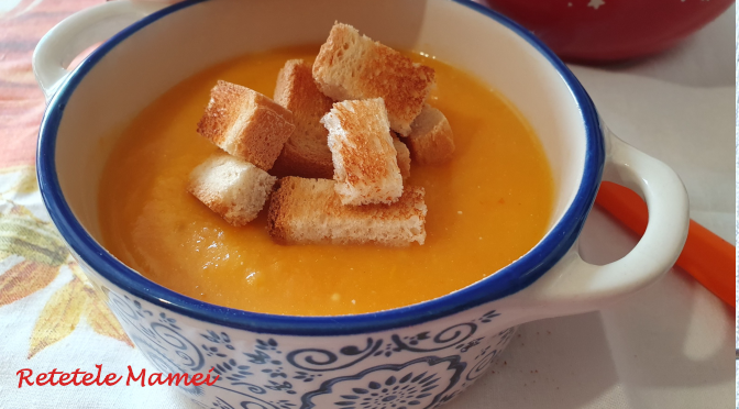 Pentru că mi-a rămas dovleac, cca 1 kg, de la „Checul cu dovleac și nuci„, am pregătit astăzi o supă cremă. Delicioasă, de sezon, simplu de făcut cu ingrediente la îndemână. Savoare și aromă în farfurie!